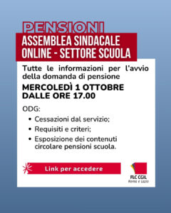 Assemblea Sindacale Online FLC CGIL – mercoledì 1 ottobre 2025 ore 17,00 – ore 19,00 – Pensioni 2025