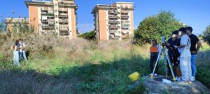 Gli studenti, accompagnati dal professore di topografia Massimo Cerrocchi, dal prof. Gianluca Caruso (insegnante tecnico-pratico) e dalle professoresse Vanessa Capria e Lucia Iavarone, hanno eseguito un rilievo topografico utilizzando la stazione totale e il prisma. L’obiettivo dell’attività era quello di raccogliere i dati necessari a progettare lo spianamento dell’area in vista della realizzazione di uno spazio verde.