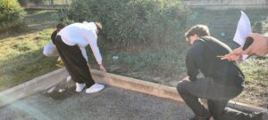 Sotto la guida del professor Massimo Cerrocchi e della professoressa Pasqualina Guarino, insegnante tecnico-pratico, gli studenti hanno eseguito un rilievo con la tecnica della trilaterazione, utilizzando fettucce metriche da 20 metri per misurare le distanze tra punti di riferimento e realizzare la planimetria dell’area.